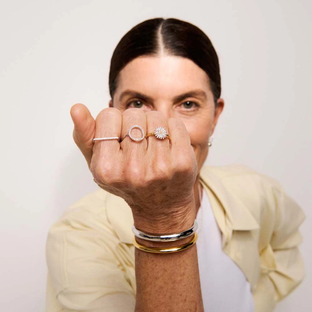 Bague en laiton doré à l’or 750/1000 montée d’un fleur printanière pavée d’oxydes de zirconium.