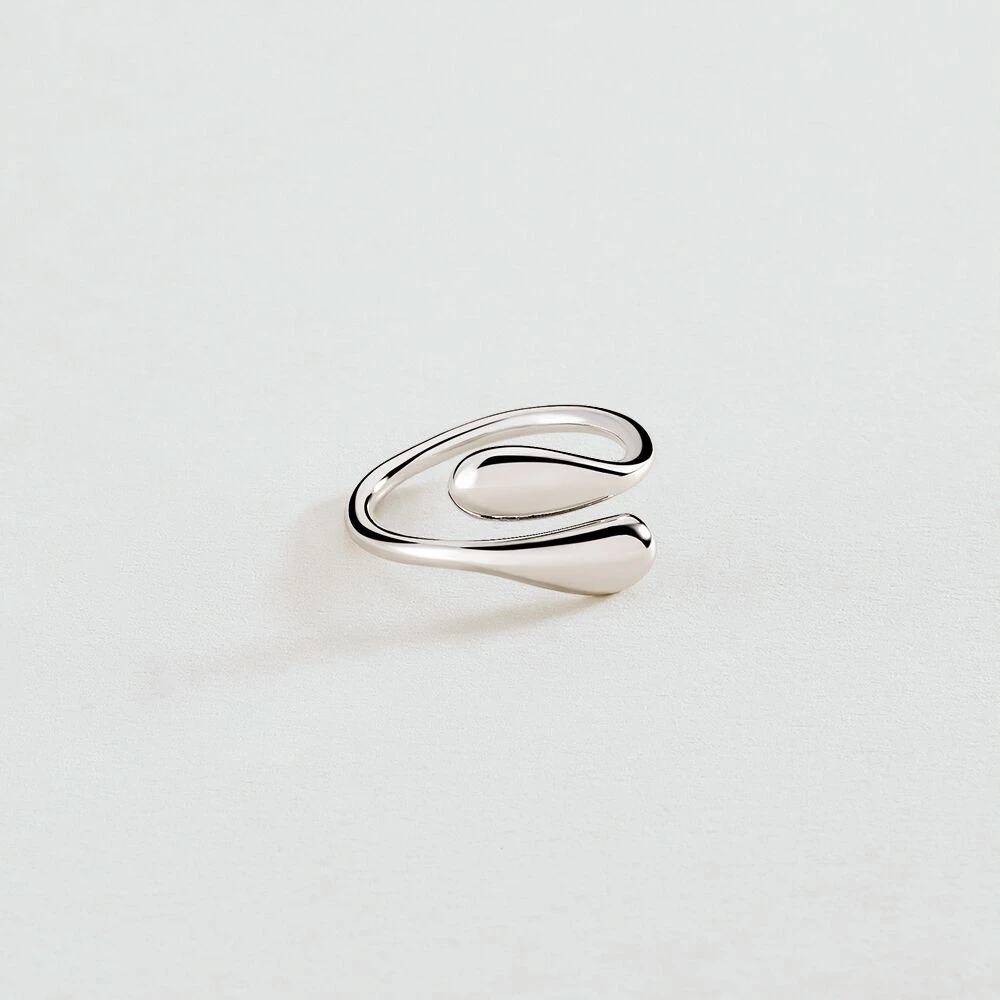 Bague fine en laiton rhodié représentant deux gouttes qui s’enlacent. .