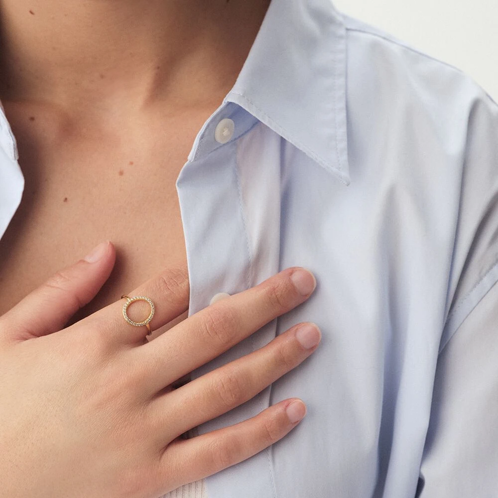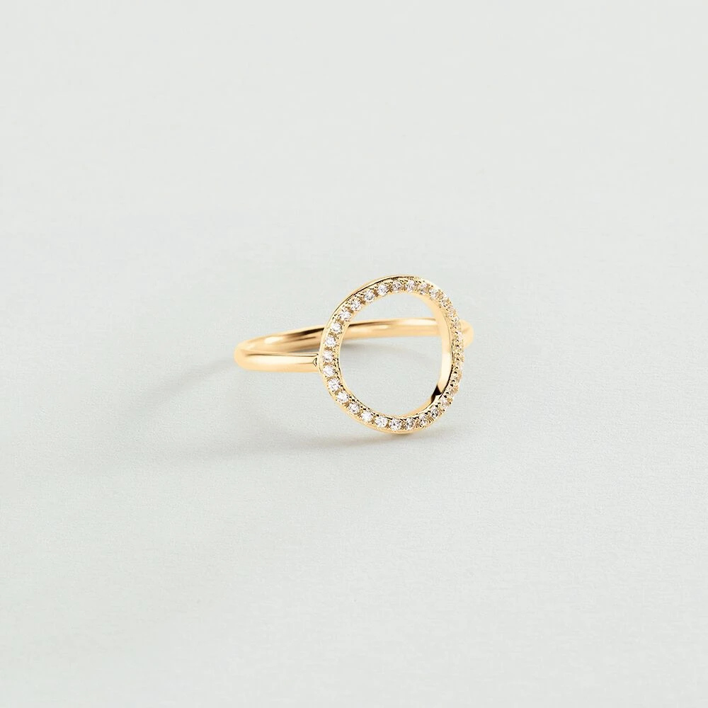 Bague en argent 925/1000 doré à l’or 750/1000 en forme de rond pavé. .