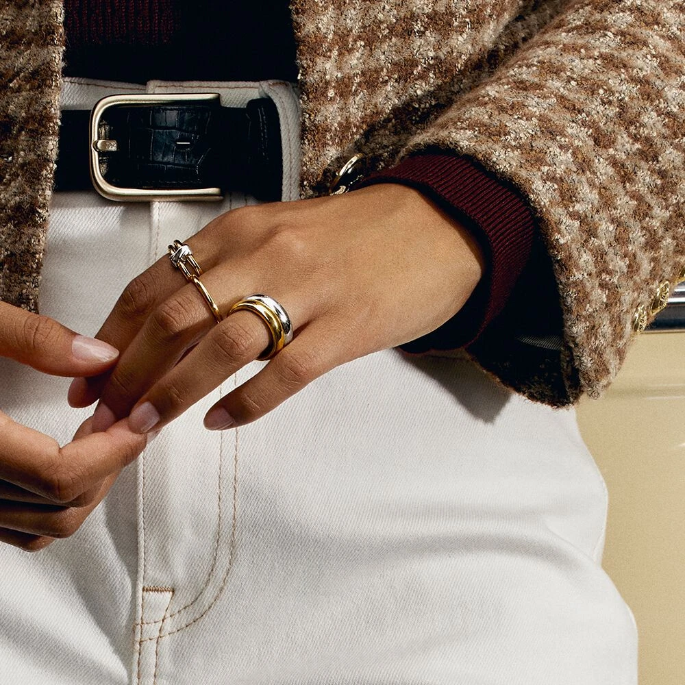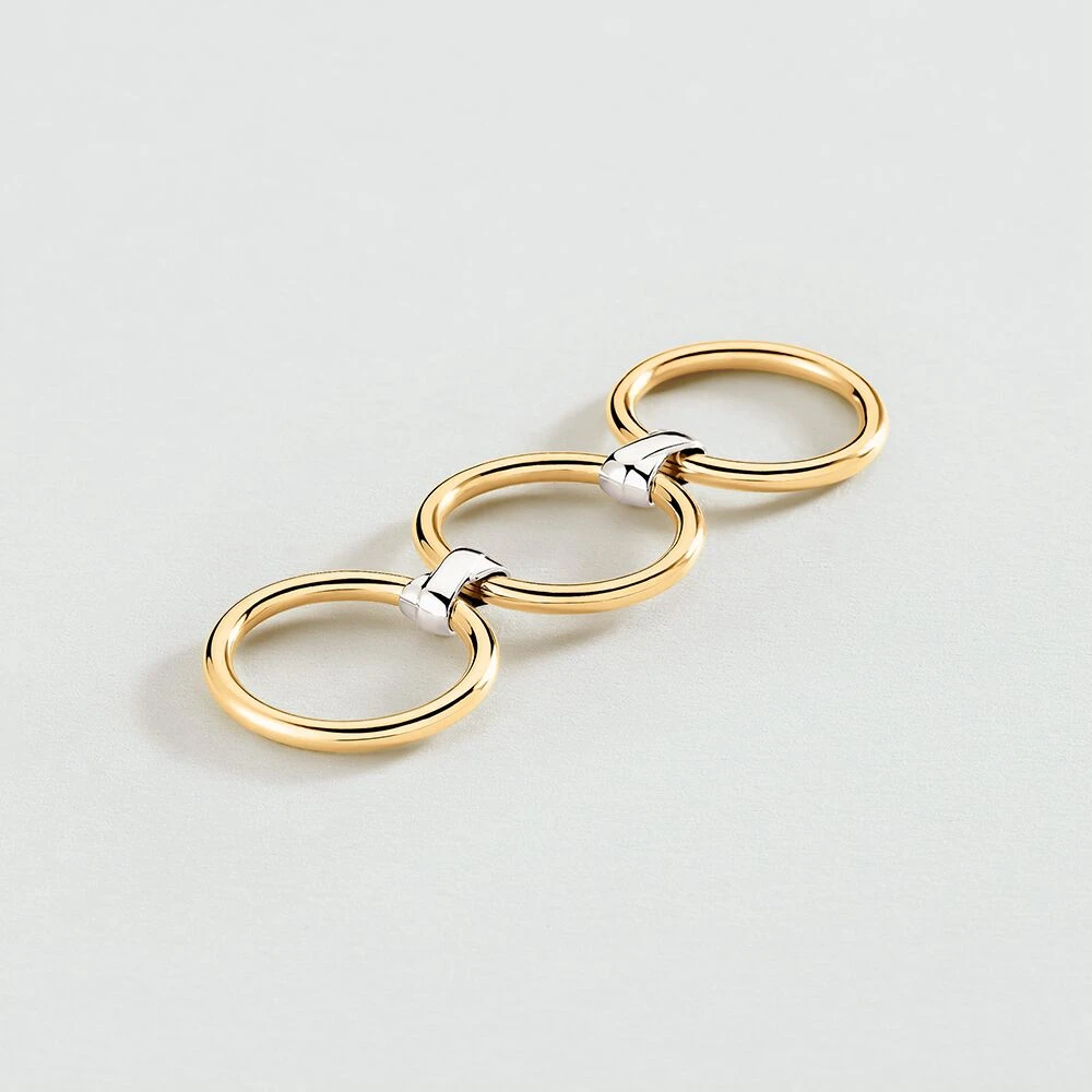 Bague en argent 925/1000 dorĂ© Ă l’or 750/1000 avec de petite croix en argent 925/1000 rhodiĂ©.
