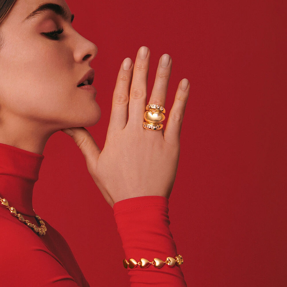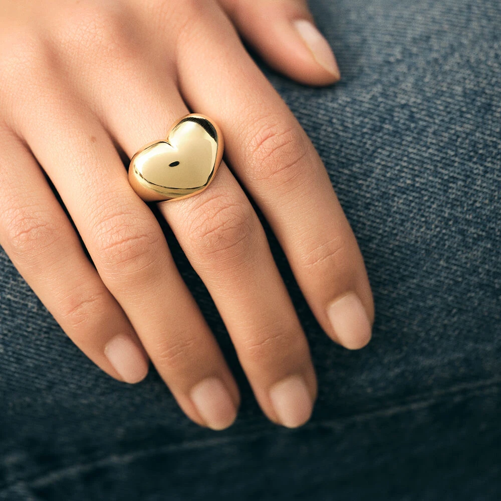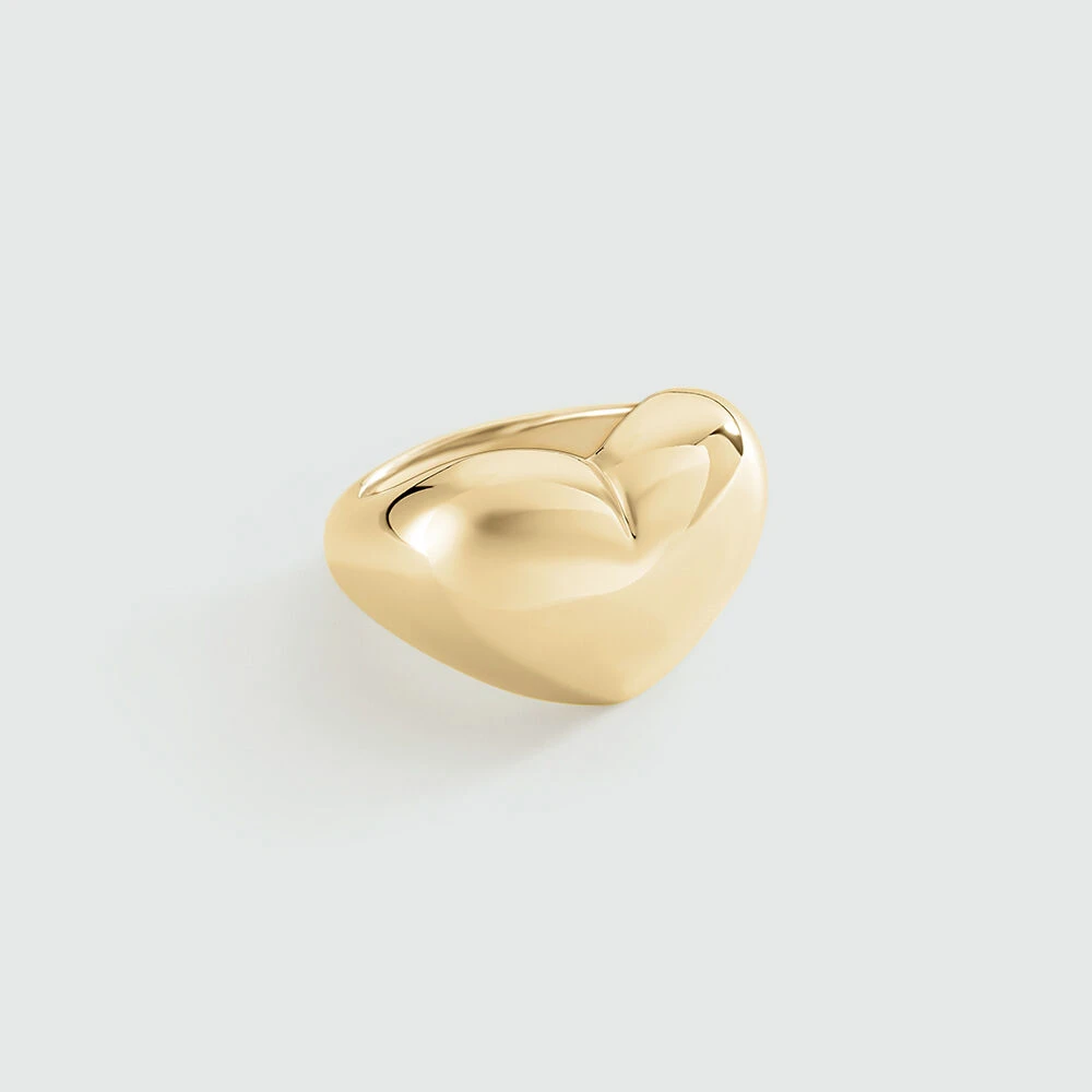 Bague bombée en laiton doré en forme de cœur .