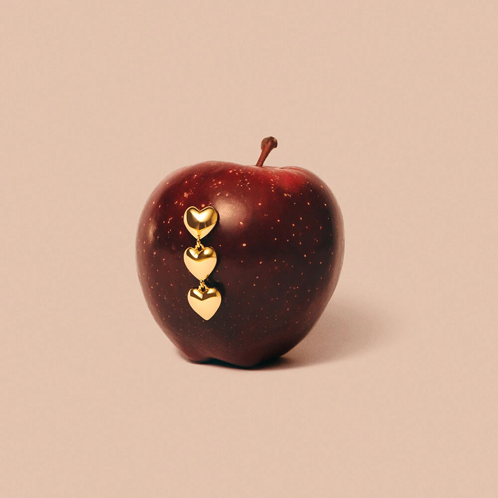 Boucles d’oreilles linĂ©aires Ă©lĂ©gantes, composĂ©es de trois cĹ“urs en mĂ©tal dorĂ©, pour une touche sophistiquĂ©e et moderne.