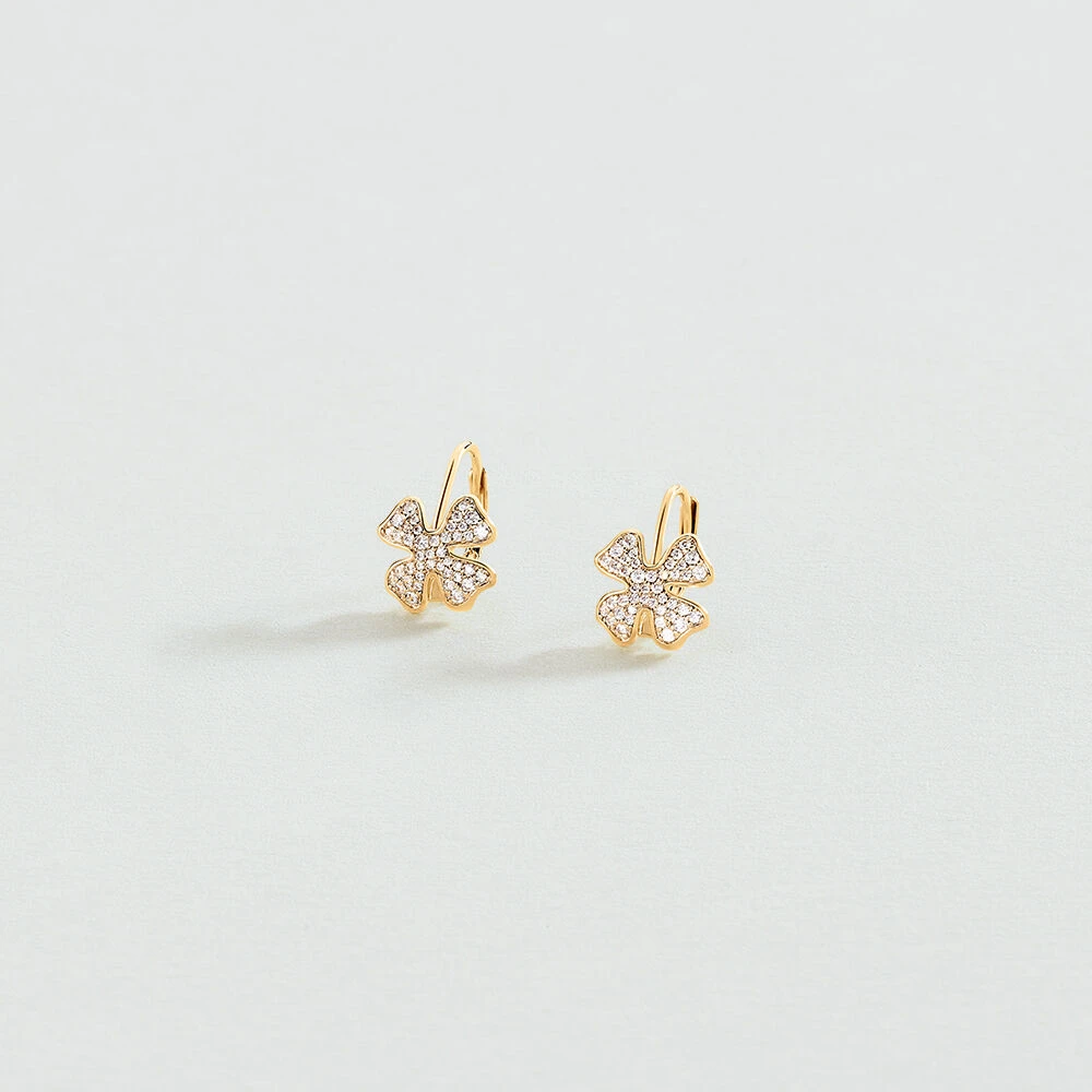 Boucles d’oreilles dormeuse en forme de trèfle en laiton doré à l’or 750/1000 et rhodié sous les oxydes de zirconium.