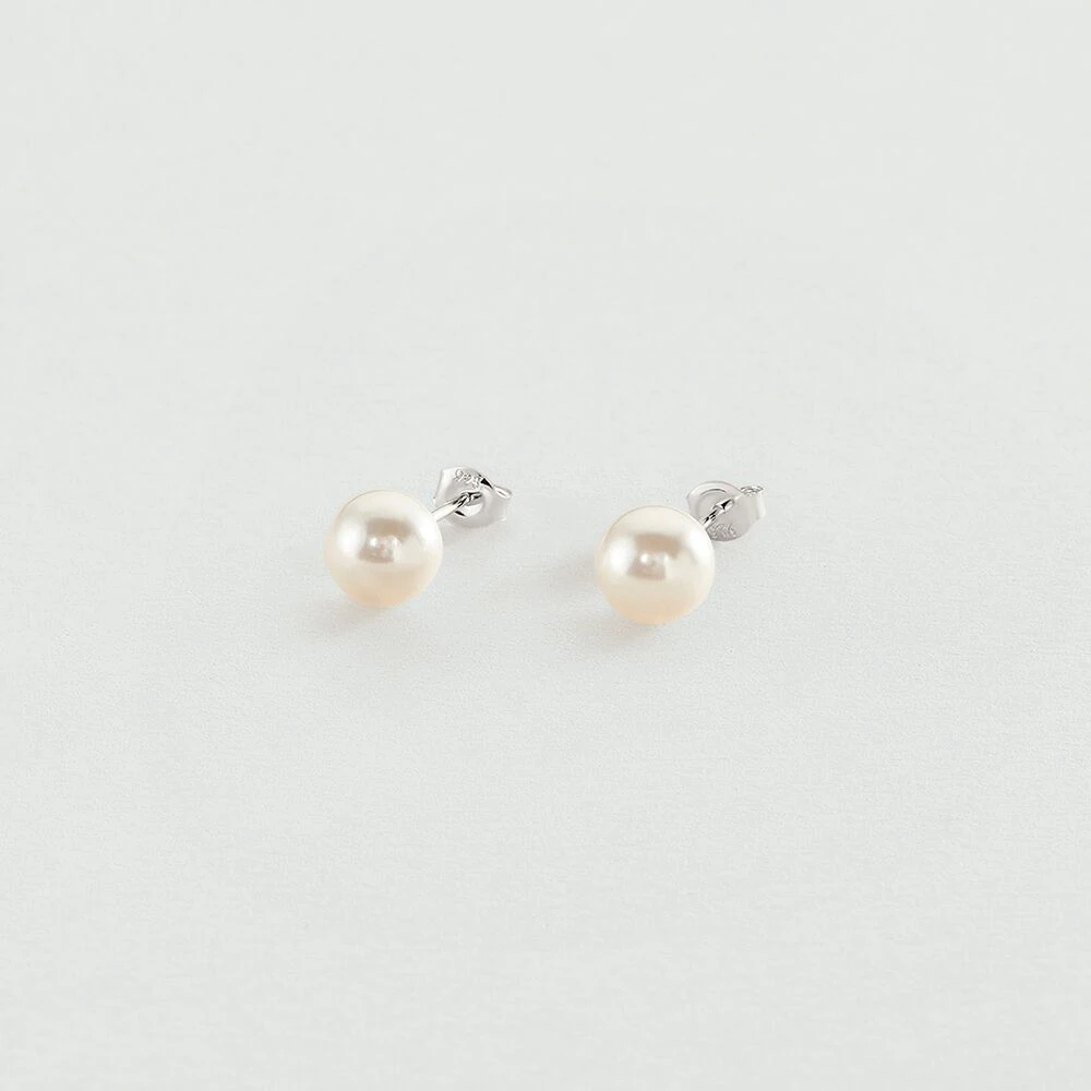 Boucles d’oreilles puces en argent vĂ©ritable ornĂ©es de perles de verre de 8 mm de diamètre.