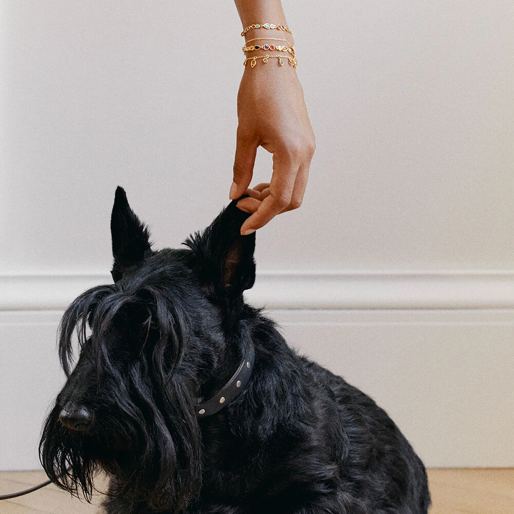 Bracelet en laiton doré à l’or 750/1000 serti de rangées d’oxyde de zirconium différentes formes. . Ce bijou mesure 155mm et contient une rallonge de 30mm