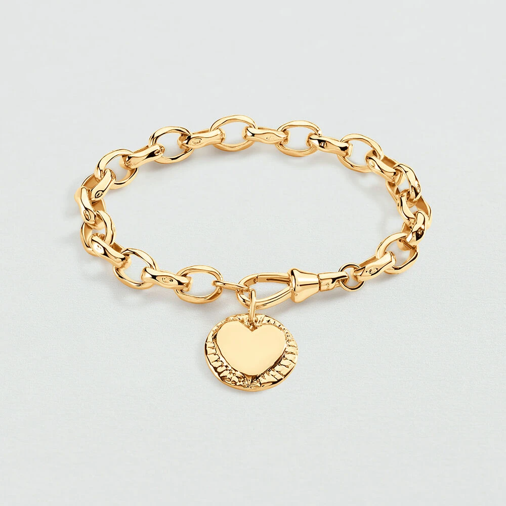Bracelet en maille épaisse en laiton doré à l’or 750/1000. Avec ou sans pendentif, ce bracelet fera sensation ! Personnalisez votre bijou et changez-le au gré de vos envies en ajoutant à votre chaîne un ou plusieurs pendentifs charms de notre collection Talismans.
