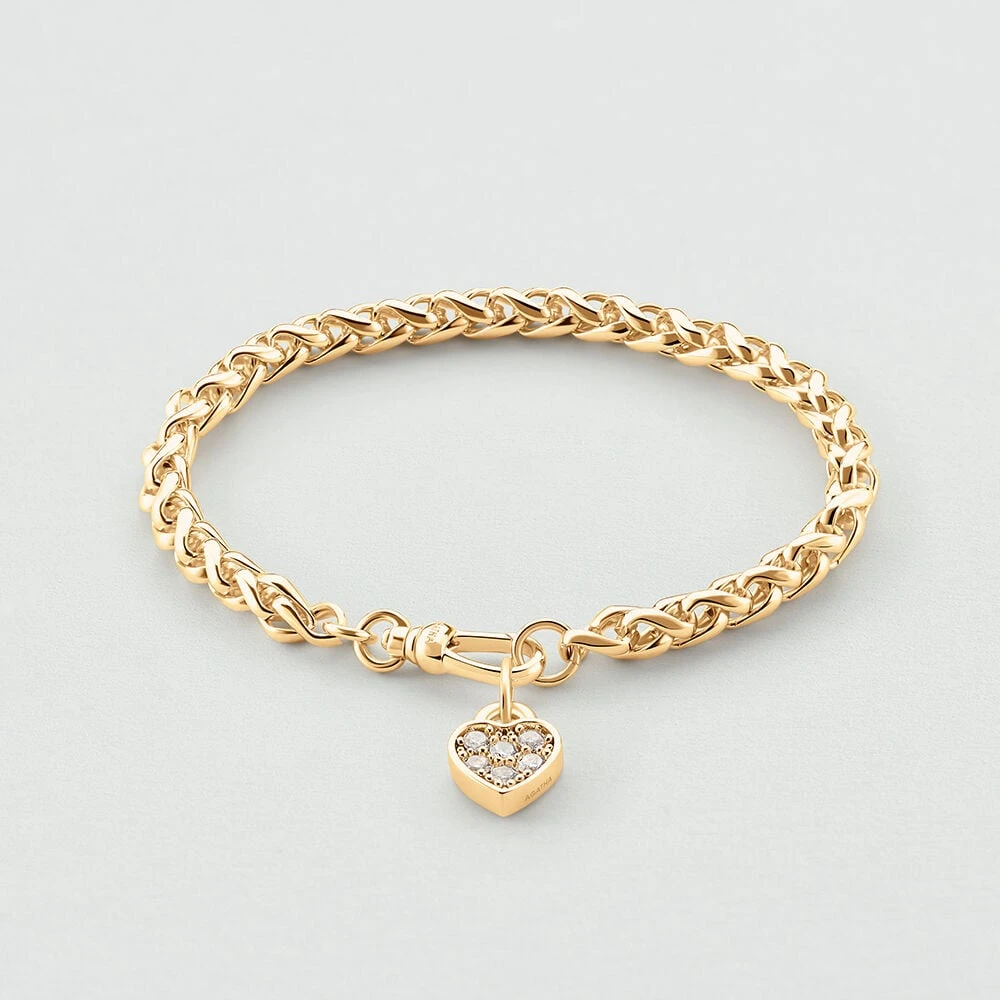 Bracelet en maille palmier doré à l’or 750/1000. Personnalisez votre bijou et changez-le au gré de vos envies en ajoutant à votre chaîne un ou plusieurs pendentifs charms de notre collection Talismans.