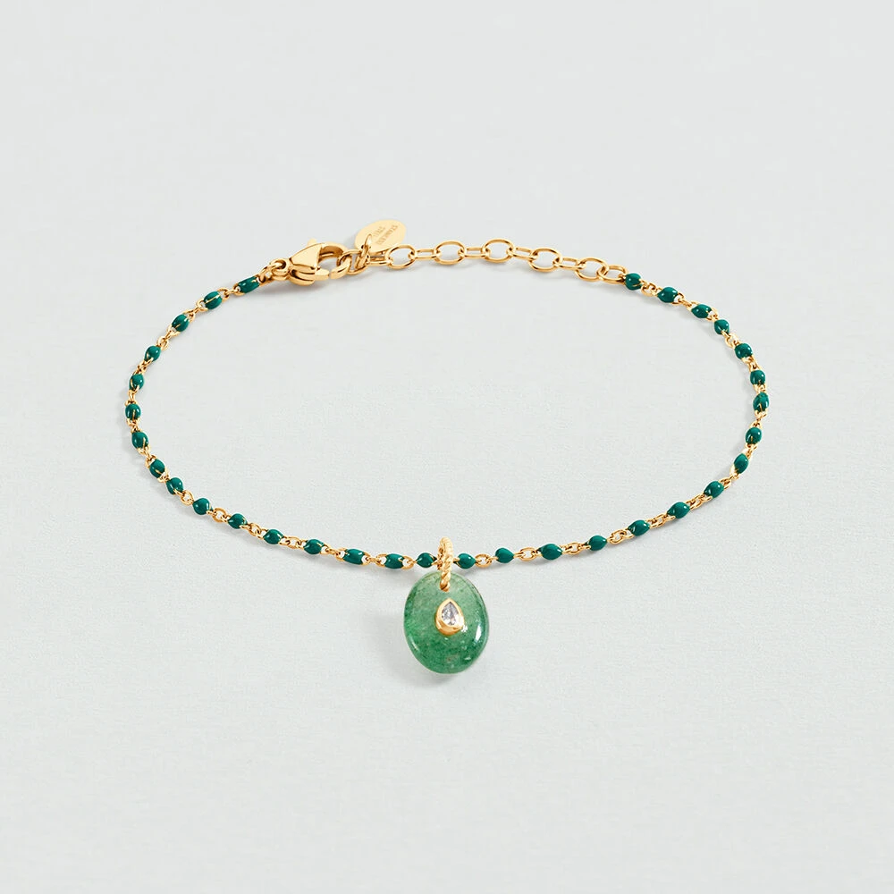 Bracelet, en laiton doré 750/1000, perles d’émail sur toute la longueur. Ce bijou mesure 150mm et contient une rallonge de 30mm