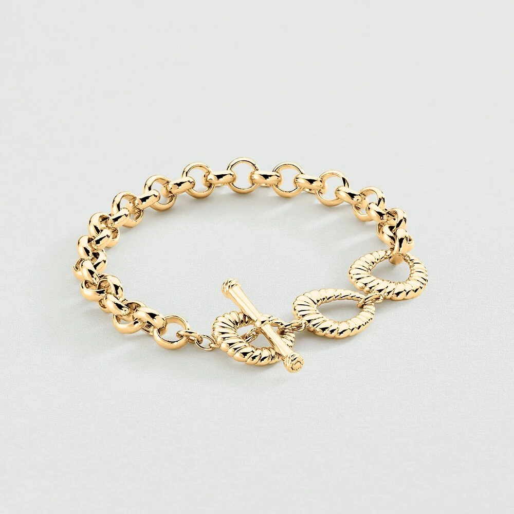 Bracelet en laiton dorĂ© Ă l’or 750/1000 fait d’une maille jaseron ronde. .