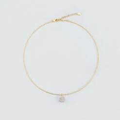 Collier court en argent véritable doré 750/1000, orné d’une petite barre rigide pavée d’oxydes de zirconium.