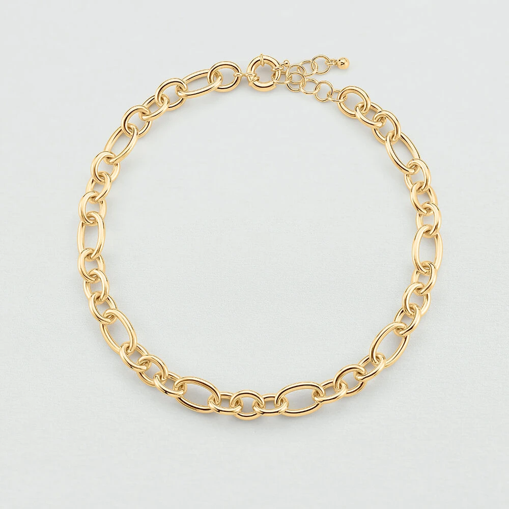 Collier court, en laiton doré 750/1000, chaine épaisse avec rallonge. . Ce bijou mesure 420mm et contient une rallonge de 50mm