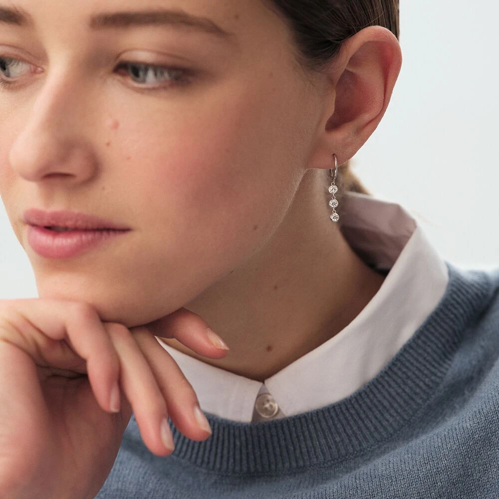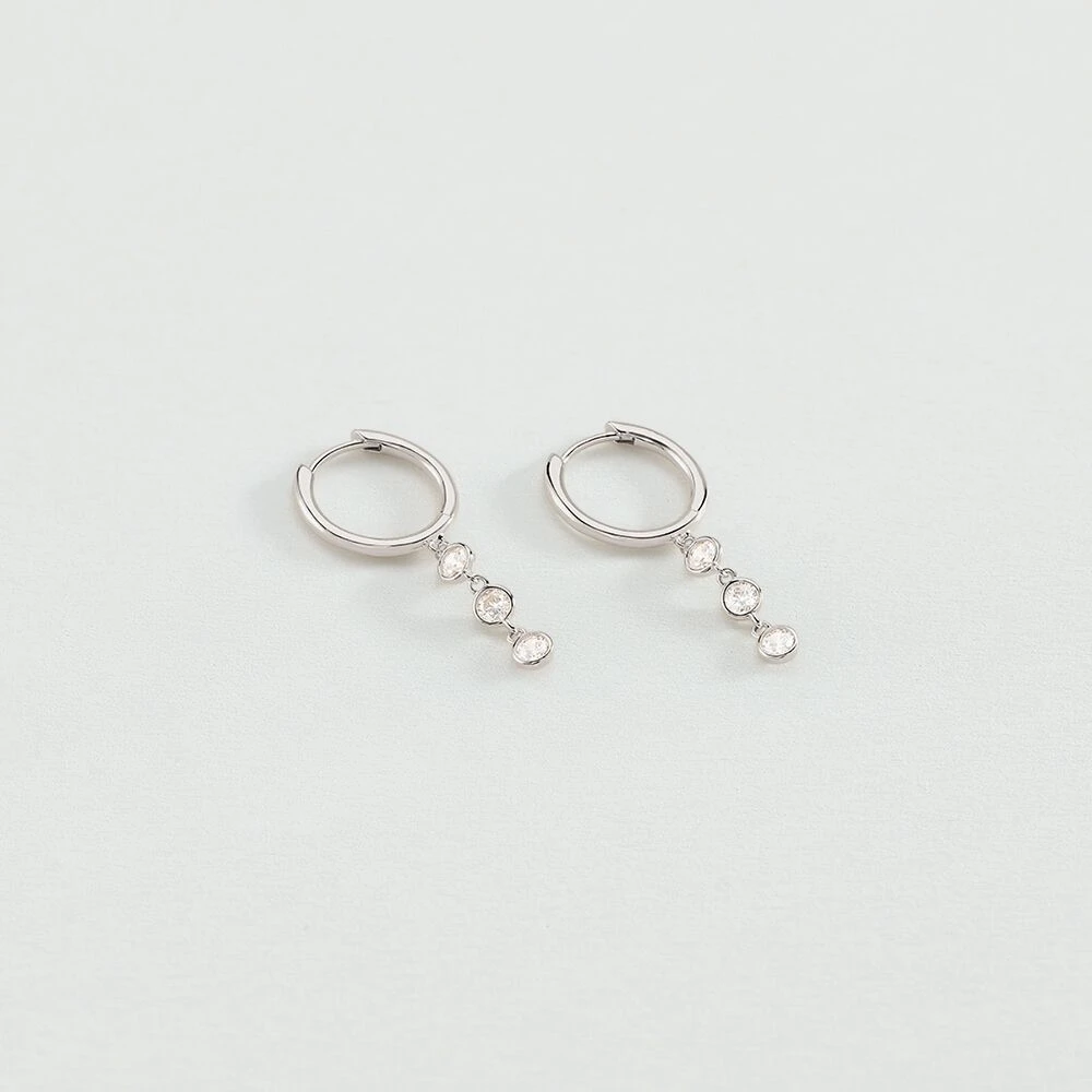 Créoles en argent 925/1000 avec trois oxydes de zirconium pendants. .