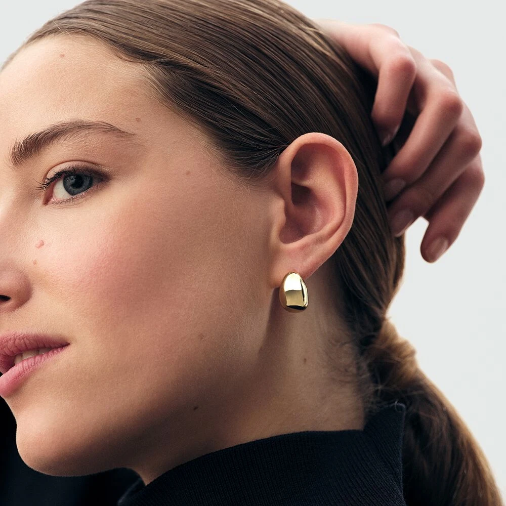 Créoles, en laiton doré 750/1000, bombées et larges.