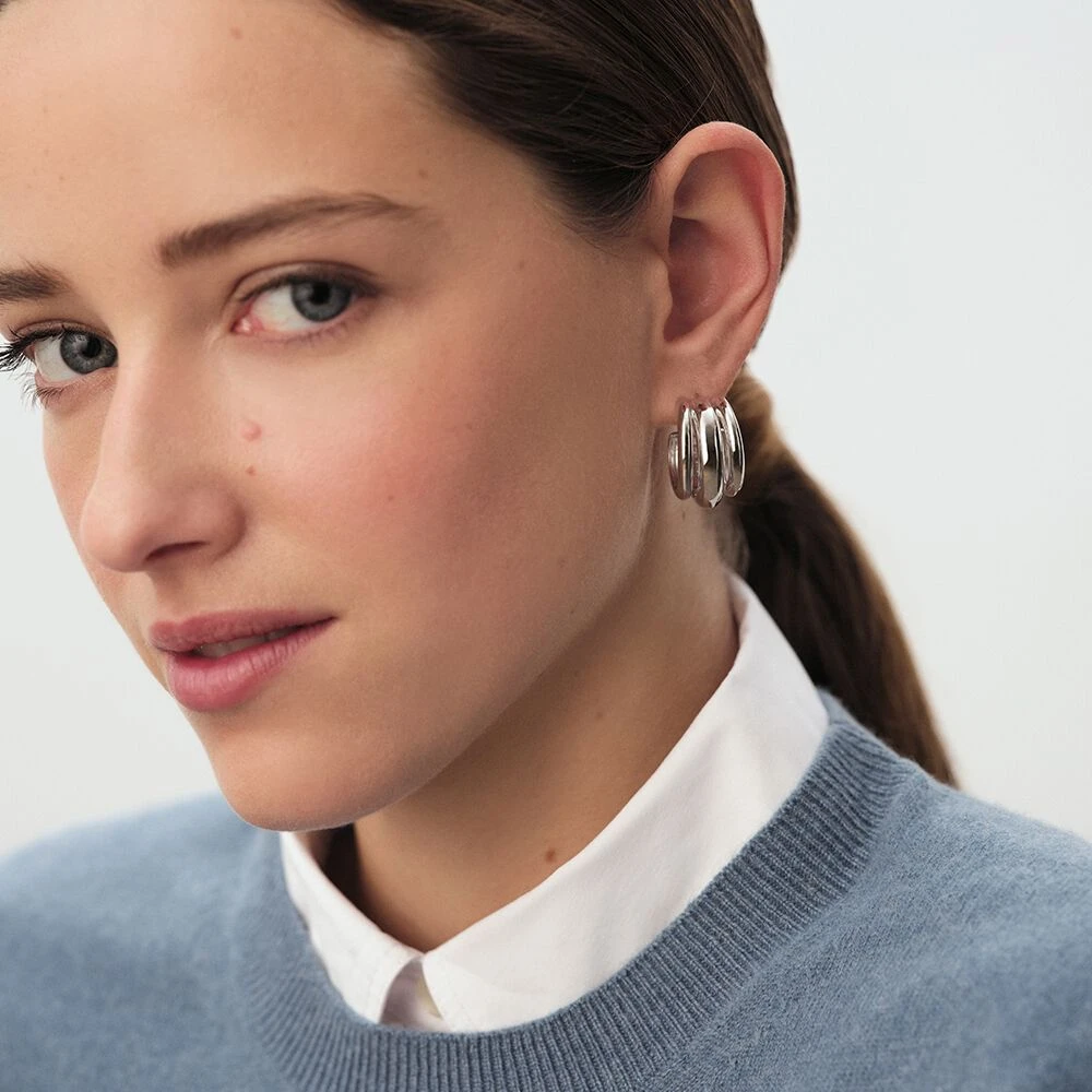 Créoles trois rangs en argent 925/1000.