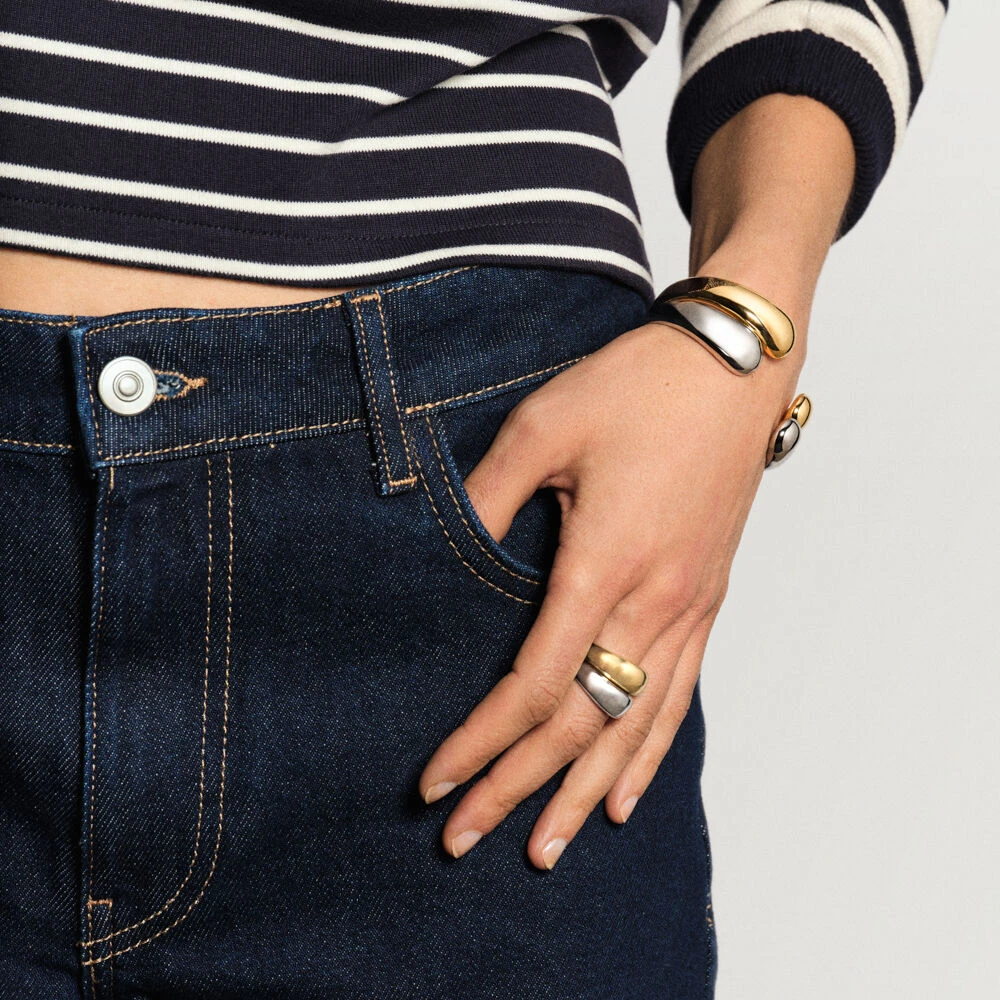 Jonc en laiton doré à l’or 750/1000 formant deux gouttes sur votre poignet..