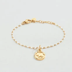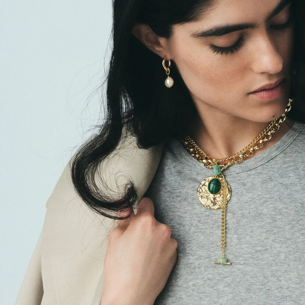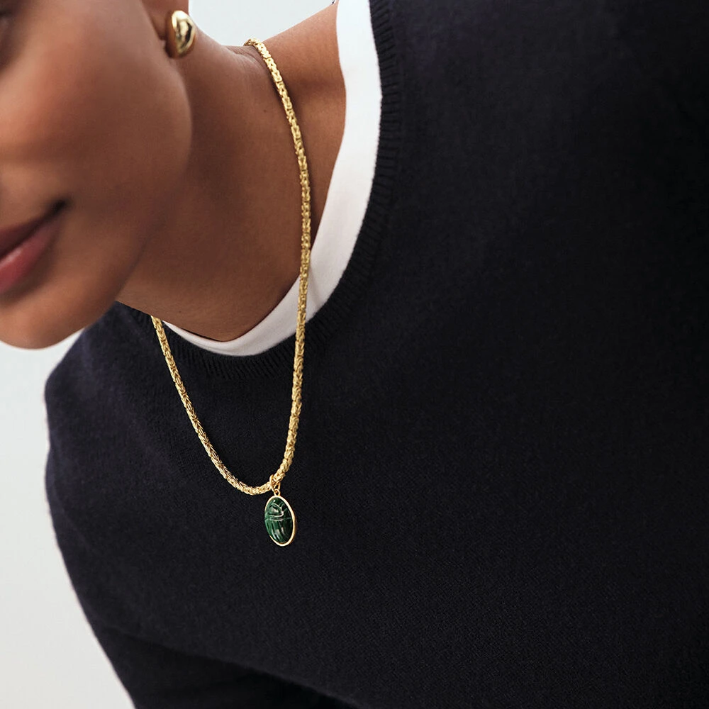 Pendentif charm en laiton doré à l’or 750/1000 et malachite en forme de scarabée. Créez votre bijou unique et personnalisé en l’associant à d’autres pendentifs charms et à la chaîne de votre choix..