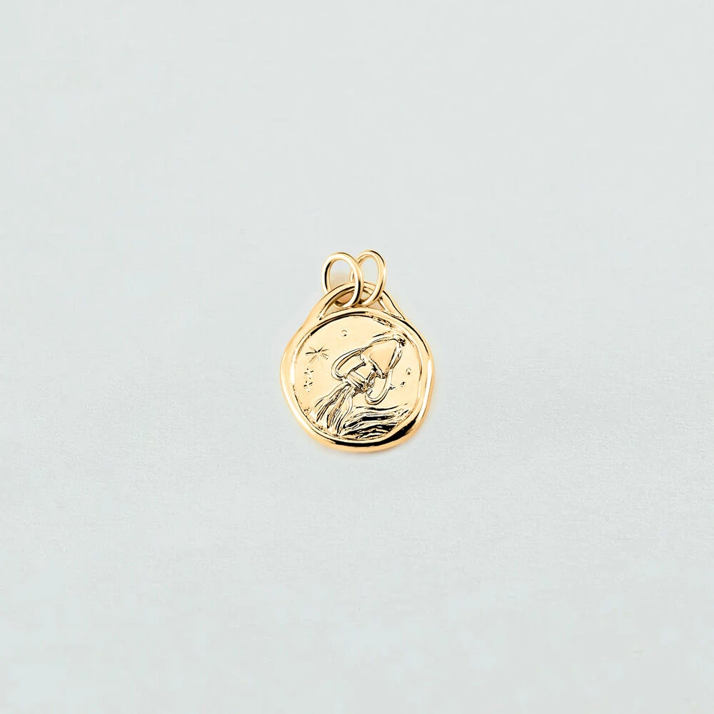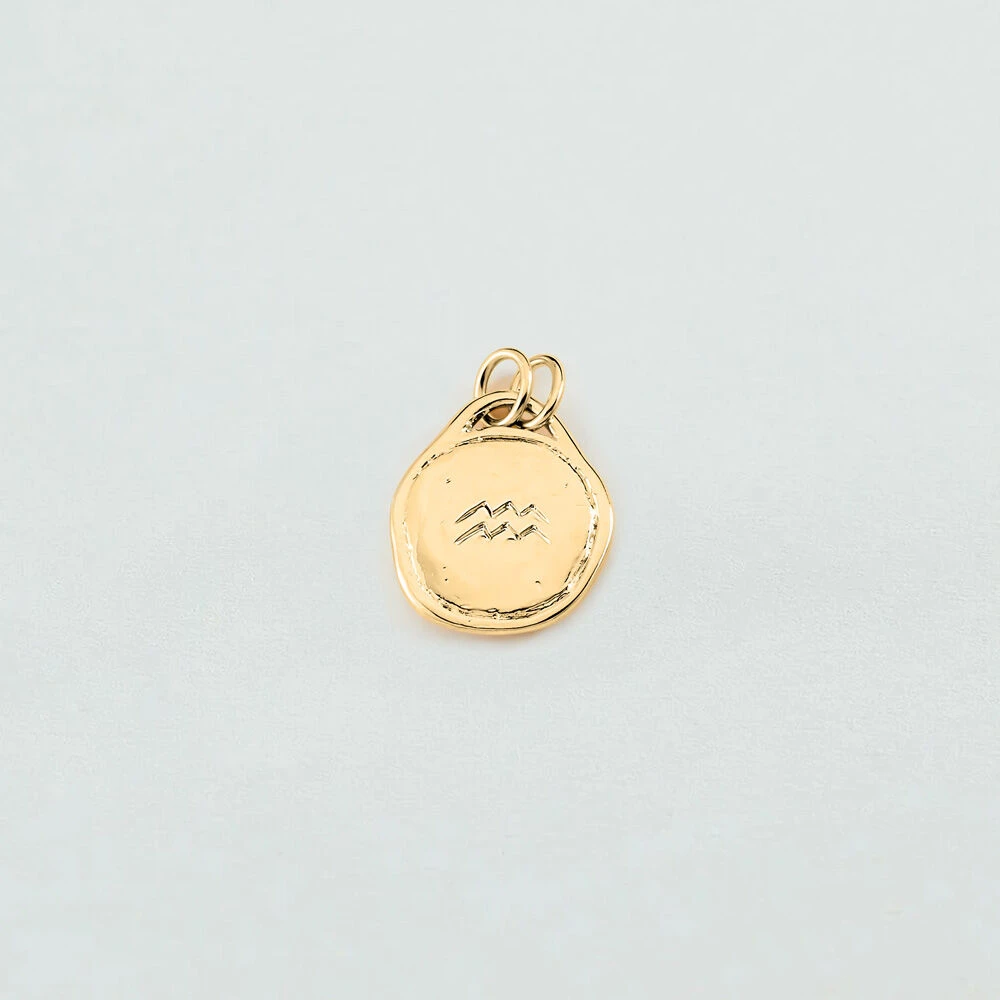 Médaille zodiaque Verseau. Visionnaire et libre, cette médaille française en laiton doré à l’or 750/1000 exprime l’audace du Verseau. Gravée à la main recto verso : une onde d’eau stylisée, un vent de renouveau.